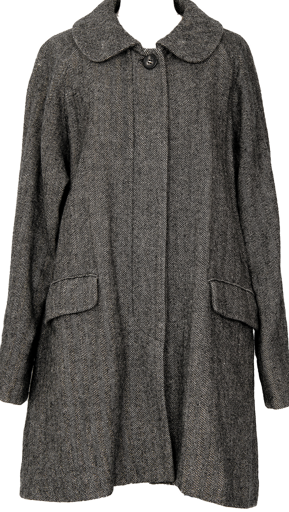 JOURNAL STANDARD JAPAN. White, Black Wool Linen Herringbone Round Collar Coat