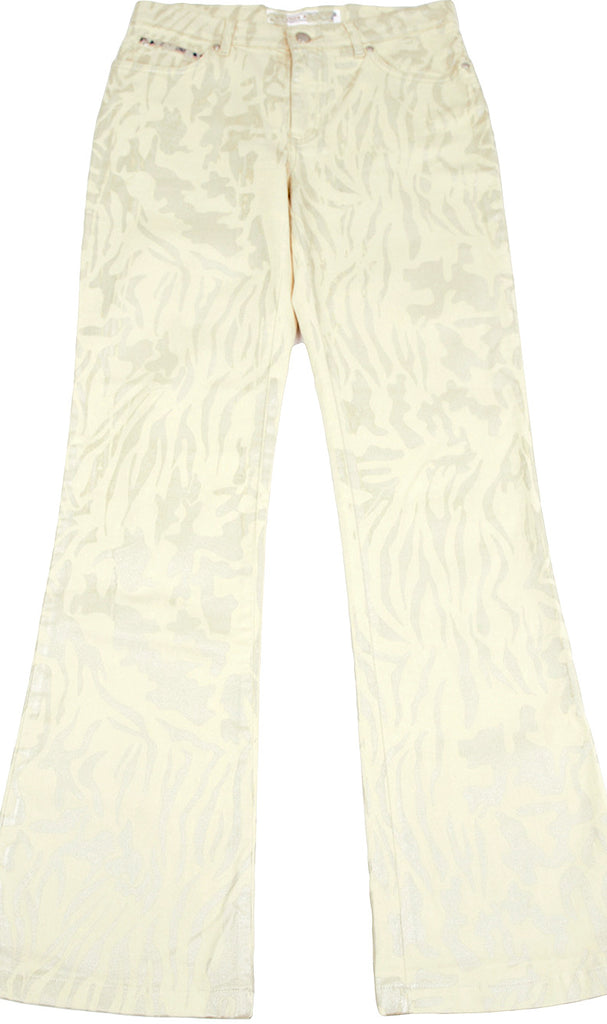 KRIZIA JEANS PARIS. Beige Cotton Camouflage Printed Flare Pants