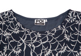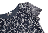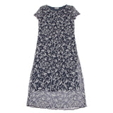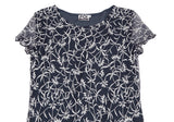 KRIZIA PARIS. Navy Floral Jacquard Chiffon Short Sleeve Dress