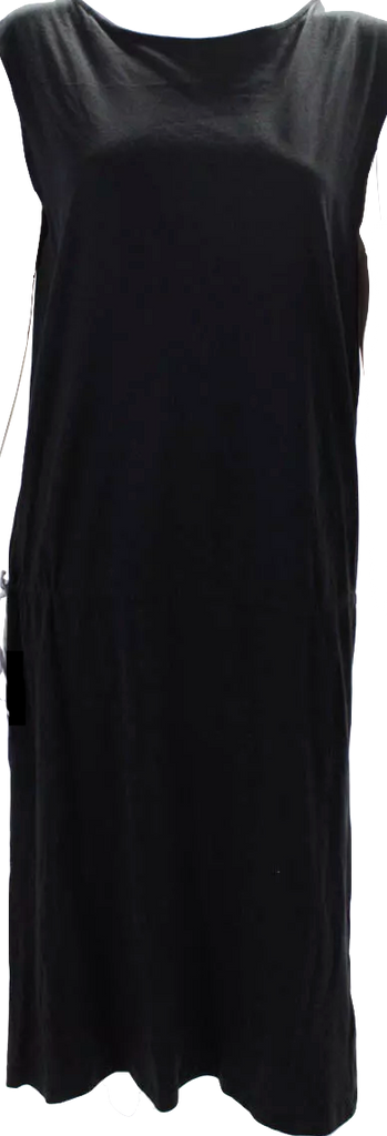 La Garconne Moderne Black Cotton Lightweight Drawstring Waist Long Dress
