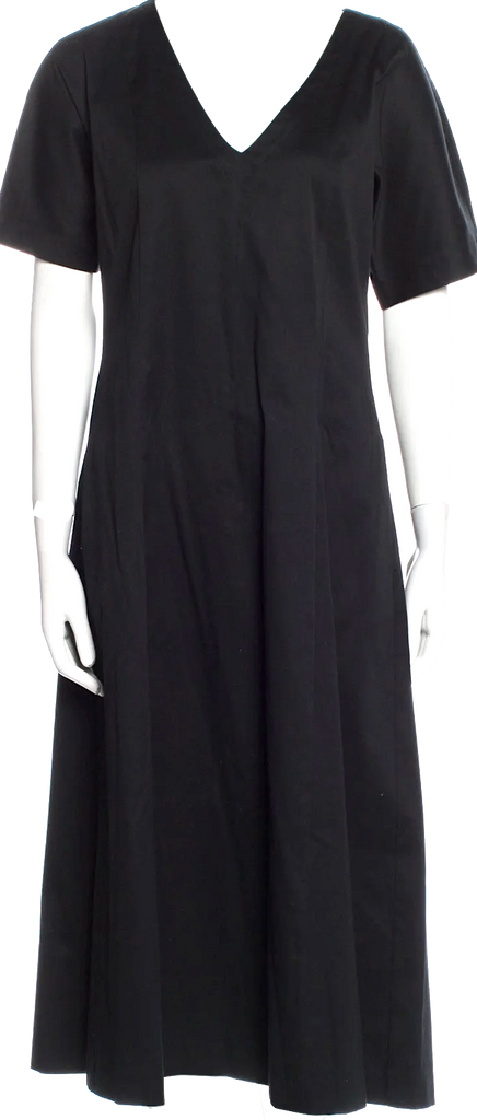LA GARÇONNE MODERNE Black Cotton/Lycra Blend V-Neck Midi Length Dress