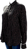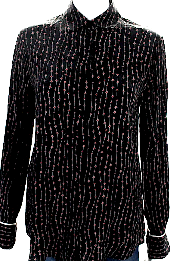 La Ligne NY. Black, Red Button Up Long Sleeve Collared Printed Shirt