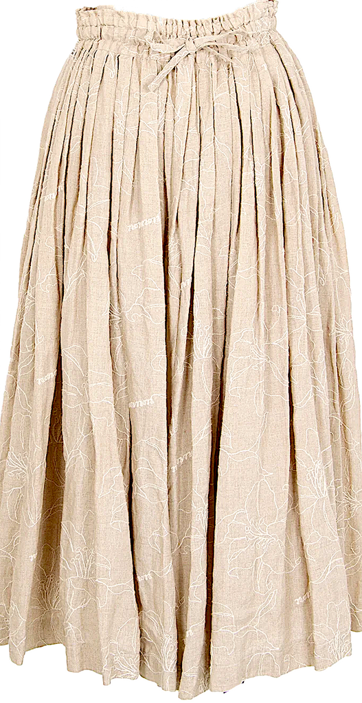 Mademoiselle NON NON JAPAN. Beige Floral Stitch Linen Skirt