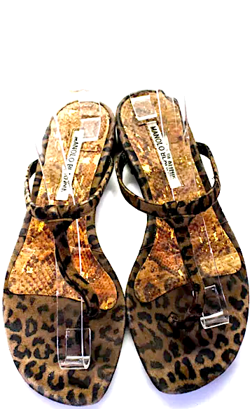 Manolo Blahnik Brown Animal Print T-Strapped Slip-On Sandals Size EUR 38.5