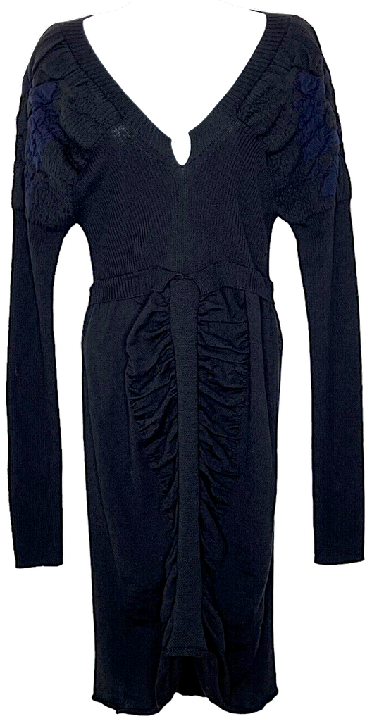 Marithe + Francois Girbaud France. Black Sweater Wool Long-Sleeve Fitted Dress