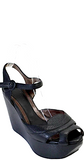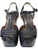 Marni Italy. Black Leather Peep Toe Platform Ankle Strap Sandals Black Size 8