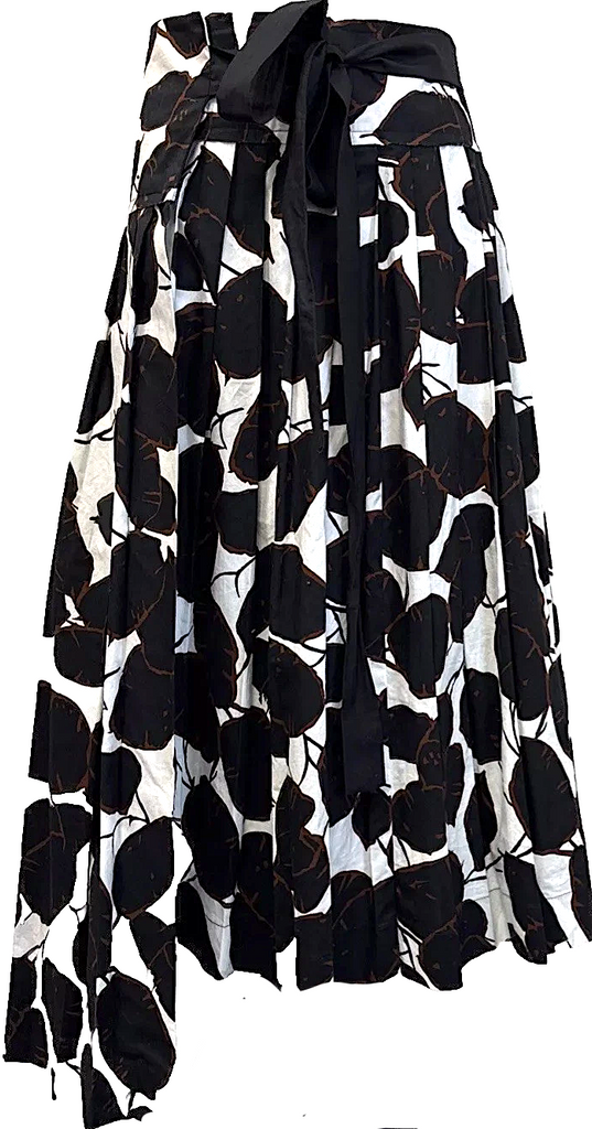 Marni Italy. Black, White Brown Asymmetrical Cotton Poplin Wrap Skirt