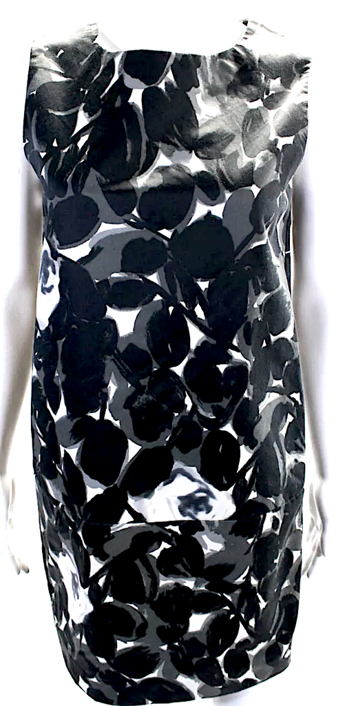 Marni Italy. Gray White Silk/Cotton Blend Floral Sateen Sleeveless Sheath Dress Black