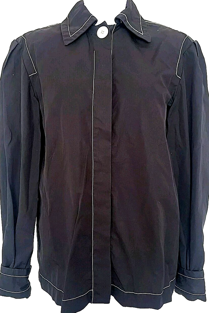 Meryll Rogge Belgian. Black Big Collar Cotton Poplin Contrast Stitch Shirt