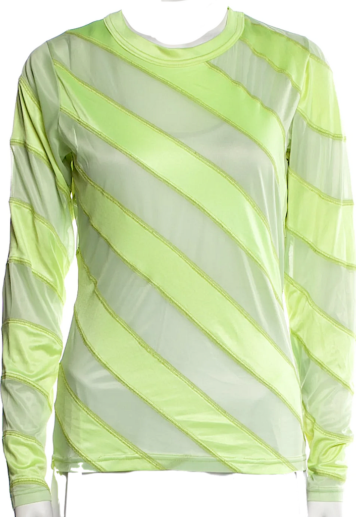 Meryll Rogge Belgium. 2025 Andam Paris Fashion Prize Winner! Chartreuse Semi Sheer Striped Crew Neck Top