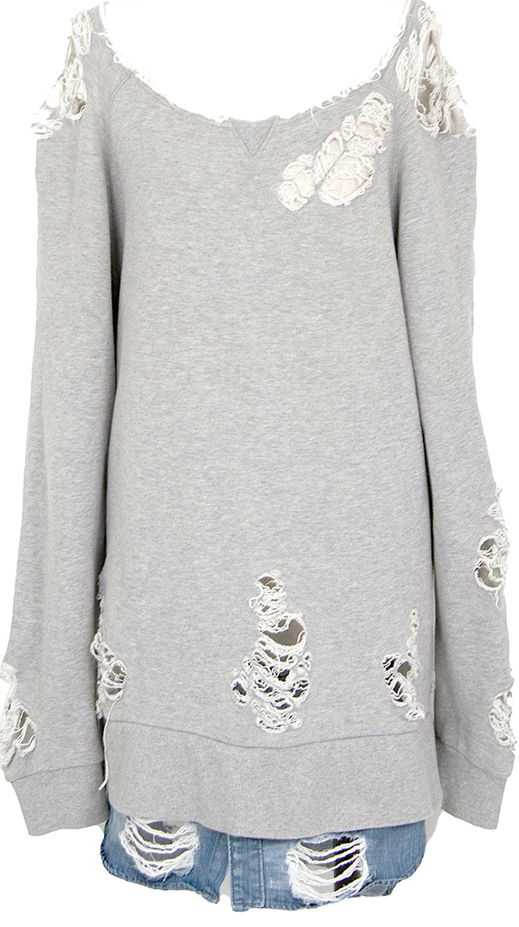 MIHARA YASUHIRO Japan.Denim Hem Grey Layered Distressed/Destroy Sweat Shirt