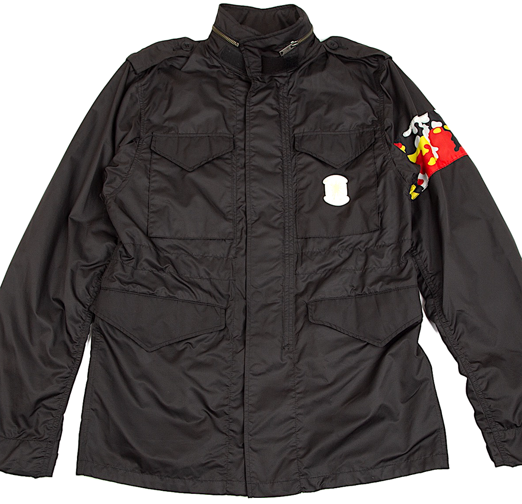 MIHARA YASUHIRO×GIANT KILLING JAPAN. Unisex Black Lining Camouflage Hooded Blouson Coat