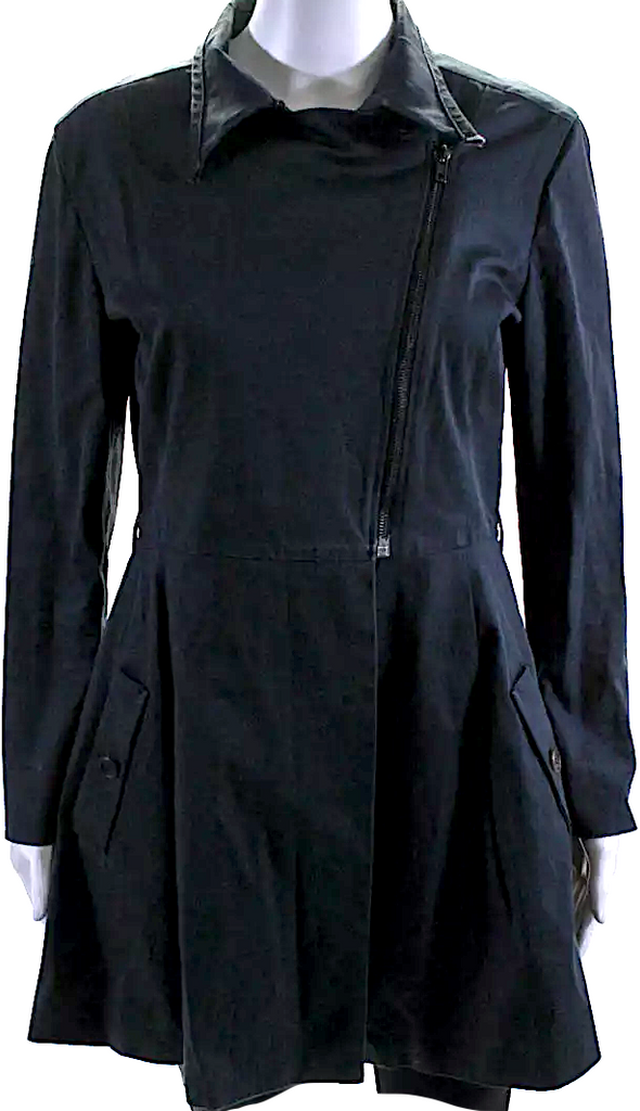 Miu Miu ITALY. Navy Cotton Collar Full Zip Belt Long Sleeve Jacket