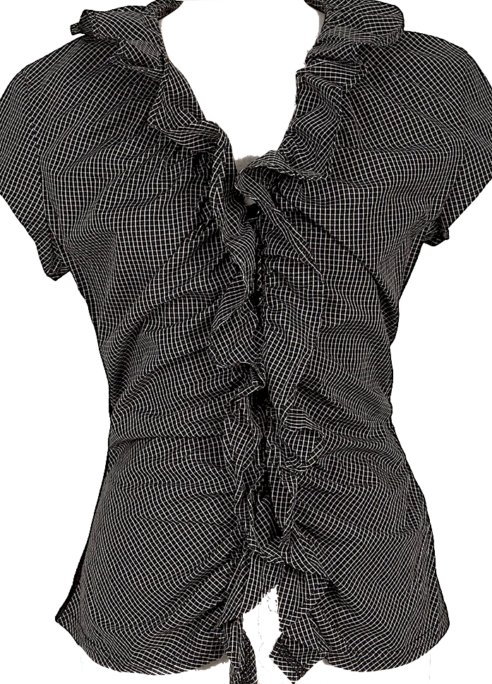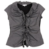 NARACAMICIE JAPAN. Black/Grey Checked Frill Switching Sleeveless Blouse