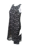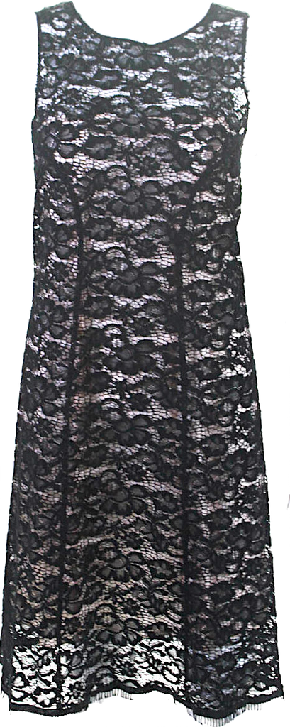 Nina Ricci Paris. Black/Neutral Lined Back Zip Sleeveless Lace Overlay Sheath Dress