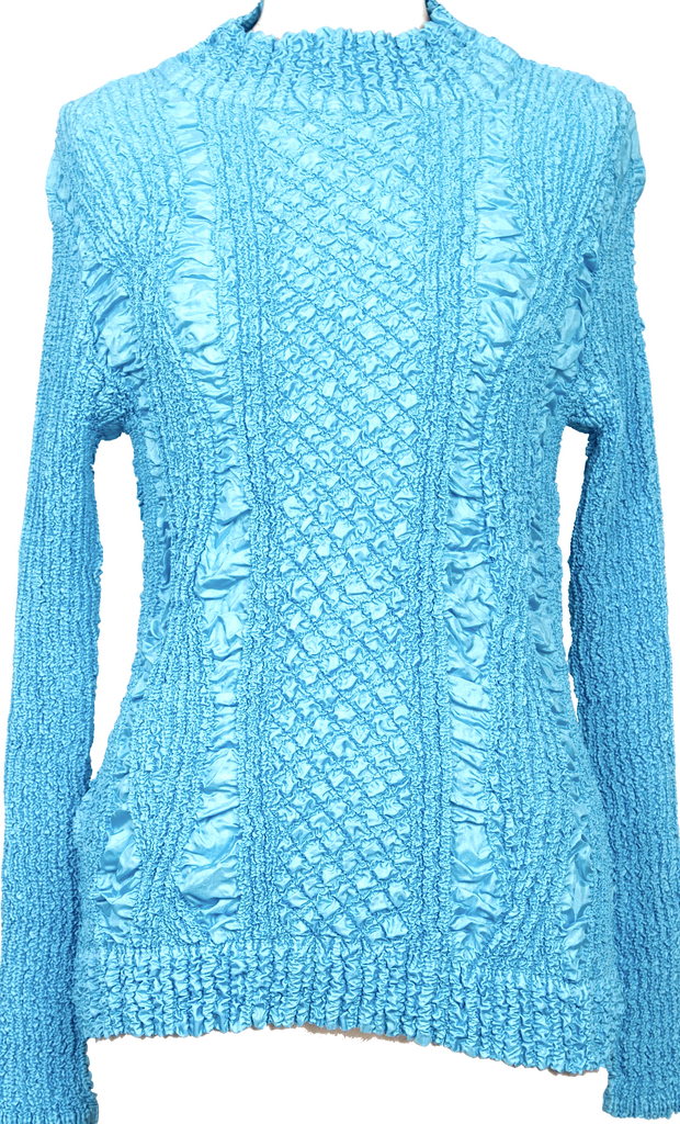 PEPLUM by YOSHIKI HISHINUMA Japan. Sky Blue Shirring High-neck Top