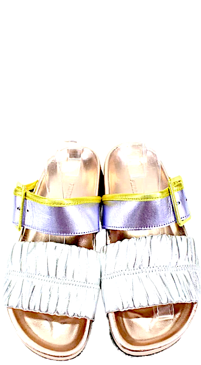 Pierre Hardy Paris. (Hermes Shoe Designer) Open Toe Strap Buckle Platform Sandals Silver Tone Size 38.5
