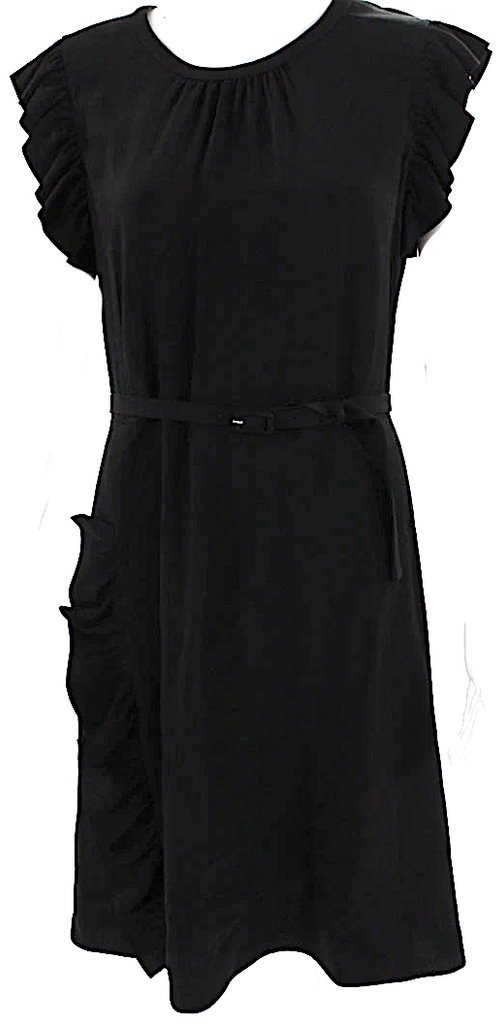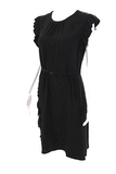 Prada Italy. Black Acetate Sleeveless Ruffled Round Neck Knee Length Dress