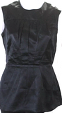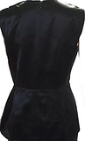 Prada Italy. Black Solid Black Crew Neck Sleeveless Zip Back Peplum Blouse Top