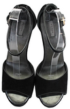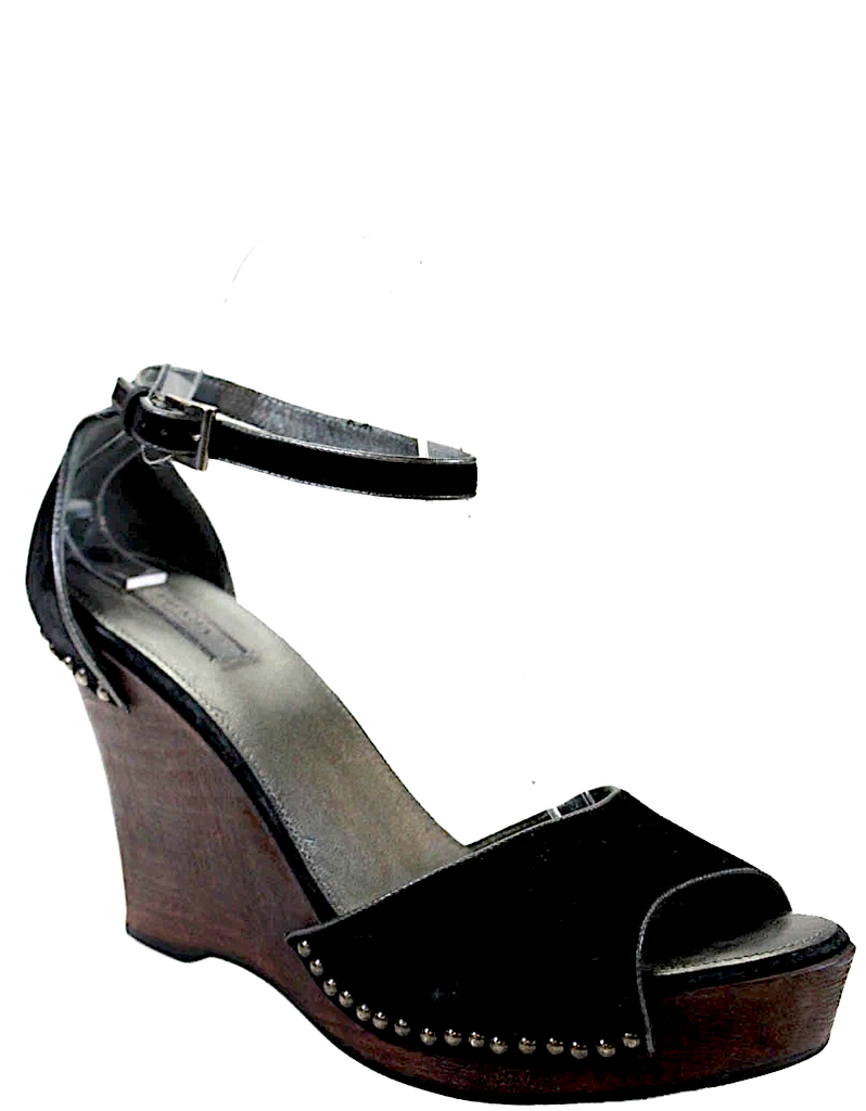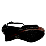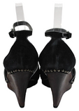 Prada Italy Black Suede Studded Detail Ankle Strap Wood Wedge Heels Size 9.5