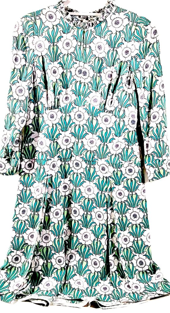 Prada Italy. Green Variations Rayon, Polyurethane Print Dress