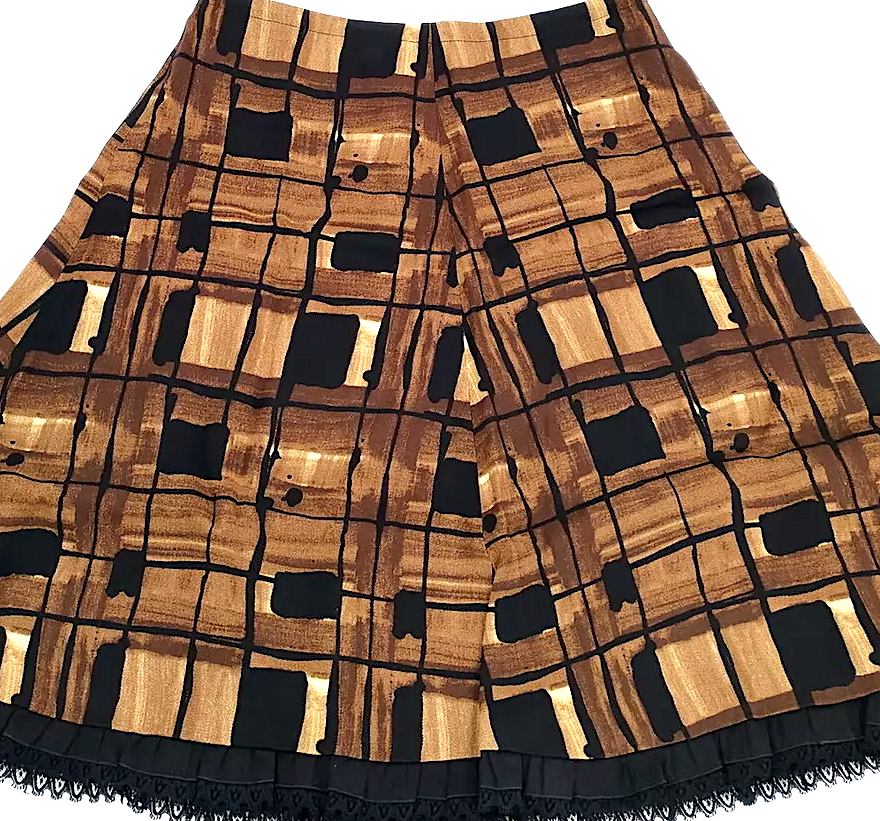 Prada Italy. Vintage Light Brown Abstract Print Rayon Rare Wide Flare Skirt