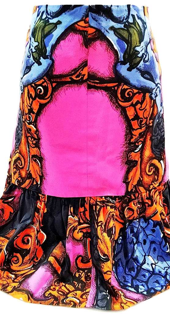 Prada Italy. Vintage Silk, Cupro, Cotton Blend Abstract Print Skirt