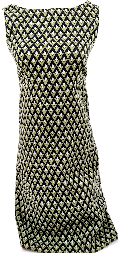 Prada Italy. Wook, Cupro, Silk Geometric Print Dress