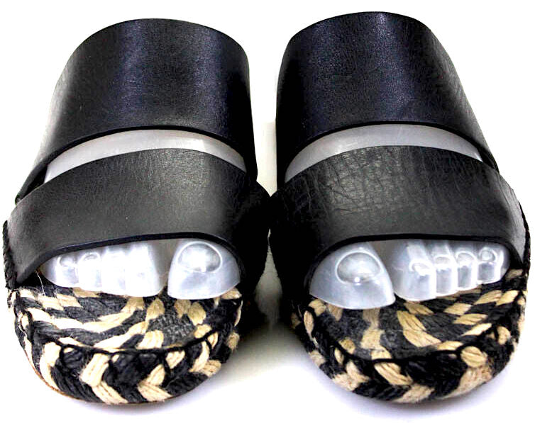 Proenza Schouler NY. Black/Beige Leather Striped Flat Sandals SZ 8.5