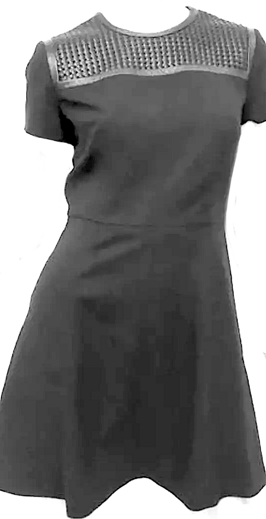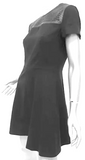 Proenza Schouler NY. Black Black Stretch Silk Woven Leather Yoke Skater Mini Dress