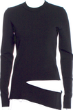 Proenza Schouler NY. Black Crew Neck Viscose Blend Long Sleeve Cut Out Top/Sweater