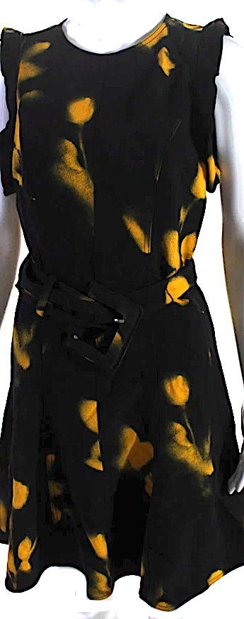 Proenza Schouler NY. Black, Yellow, Belted Spotted A Line Dress