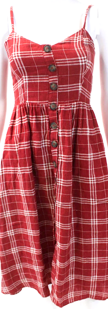 Reformation NY. Red Plaid Printed Linen Sleeveless Casual Dress