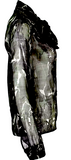 · Exterior: Black, army green, and pale gray abstract camouflage print pure virgin wool sheer woven fabric (100% virgin wool)