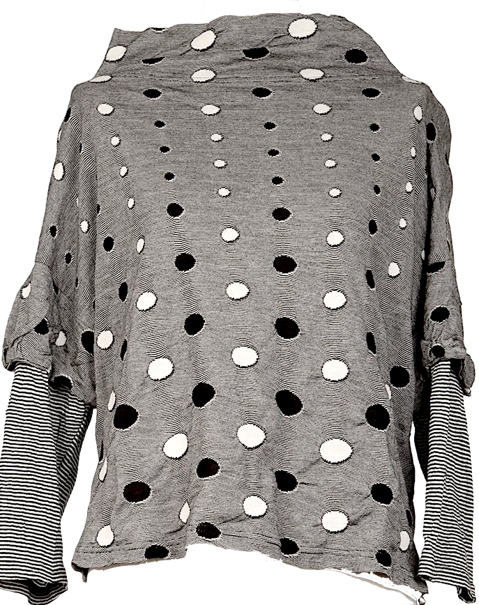 SENSOUNICO JAPAN. Black/White Cotton Dot Weave Sleeve Switching Shirt