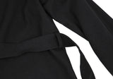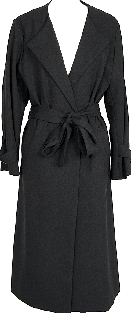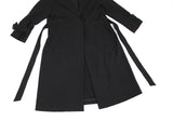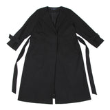SHIPS JAPAN. Black Collarless Belted Wrap Poly Coat
