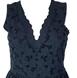 Stella McCartney UK. Navy Blue Lace Silk, Cut Outs Lined Dress