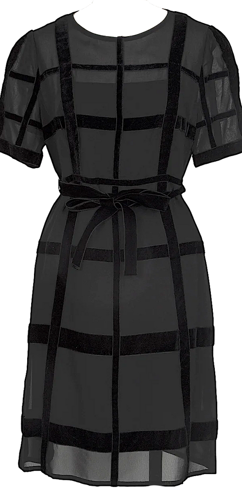 Sybilla Madrid. Black Velor Lattice Short Sleeve DressĀ