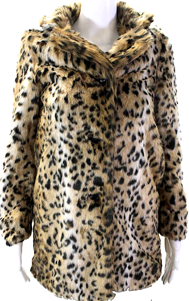 Talula Womens Faux Fur Leopard Print Button Down Coat