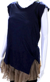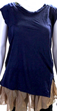 Toga Pulla Archives Japan. Blue/Beige Off Shoulder Mesh Trim Blouse