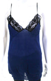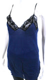 Toga Pulla Japan. Blue Cotton Black Lace Trim V Neck Cami Top