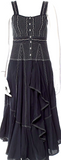 Ulla Johnson Cotton Ruffled & Embroidery Accents Striped Long Dress