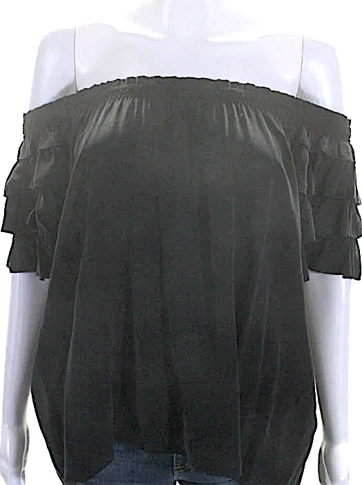 Ulla Johnson NY. Black Silk Ruffled Short Sleeve Sleek Blouse