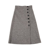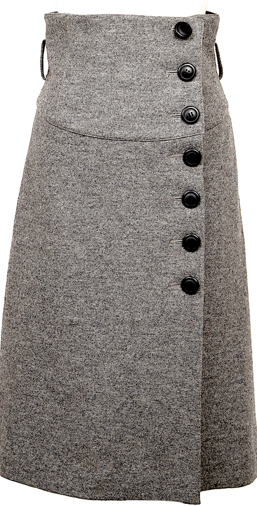 UNTITLED JAPAN. Grey Wool Angora High Waisted Button Wrap Skirt