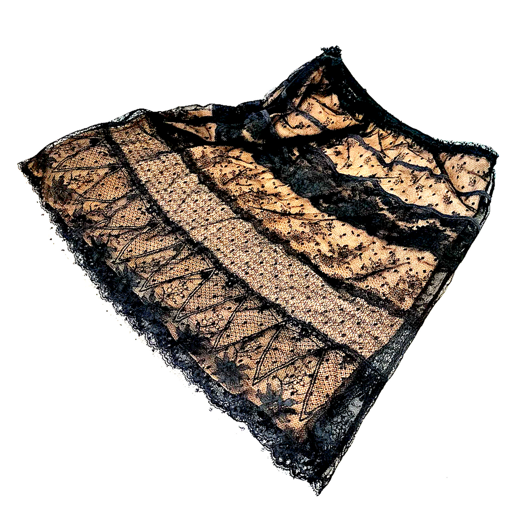 Valentino Garavani Italy. Black/Beige Lace Tessuto Nylon Skirt