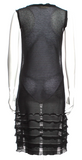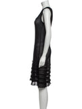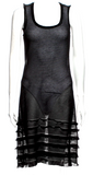 Valentino Garavani Italy. Black Semi Sheer Ribbed Striped Knee Length Dress