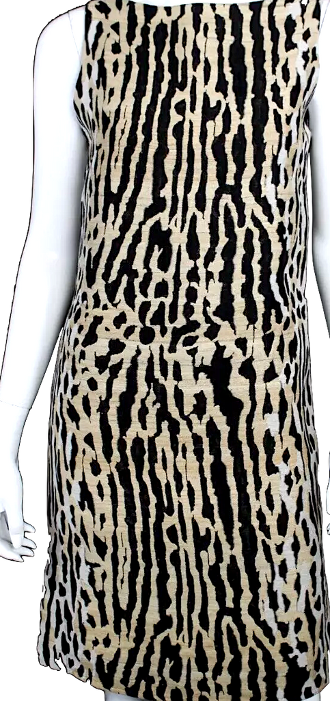 VALENTINO Italy. Black, Beige & White Abstract Jacquard Boatneck Shift Dress