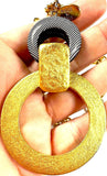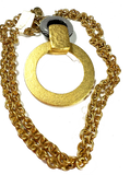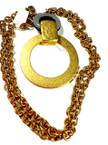 Vintage 90's Italian Goldplated Hammered Circle Pendant Necklace Mod Black White Lutcite