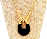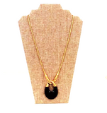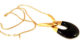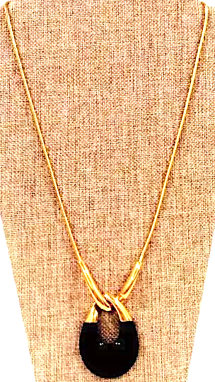 Vintage Goldplated Signed Crown Trifari Black Lucite Teardrop Pendant Necklace