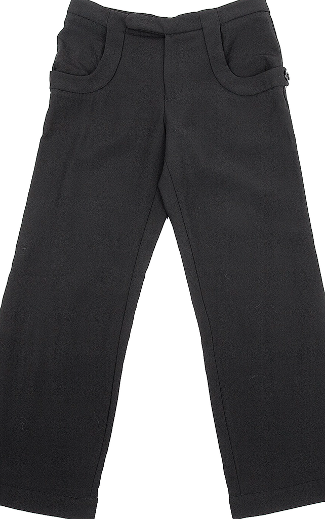 YOHJI YAMAMOTO JAPAN. NOIR. Black Wool Pants Button Accent Pockets
